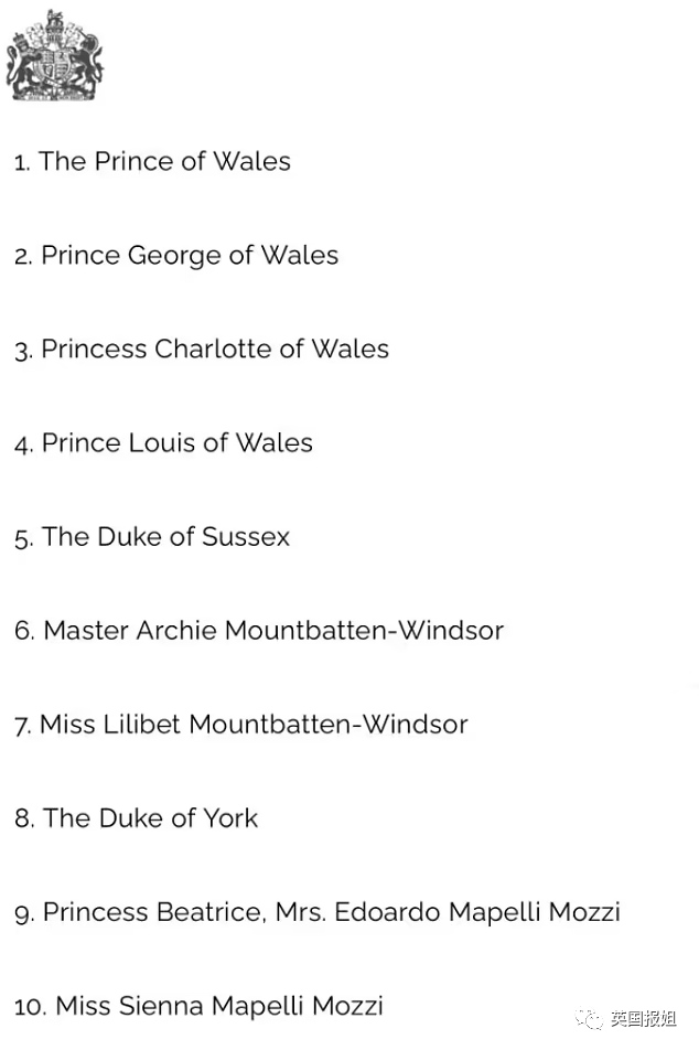 但在白金汉宫发布的最新继承顺序上,哈里和梅根的孩子,没有被列为王子和公主。