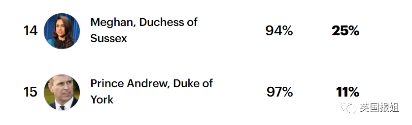 仅仅高于“恋童癖”安德鲁王子。