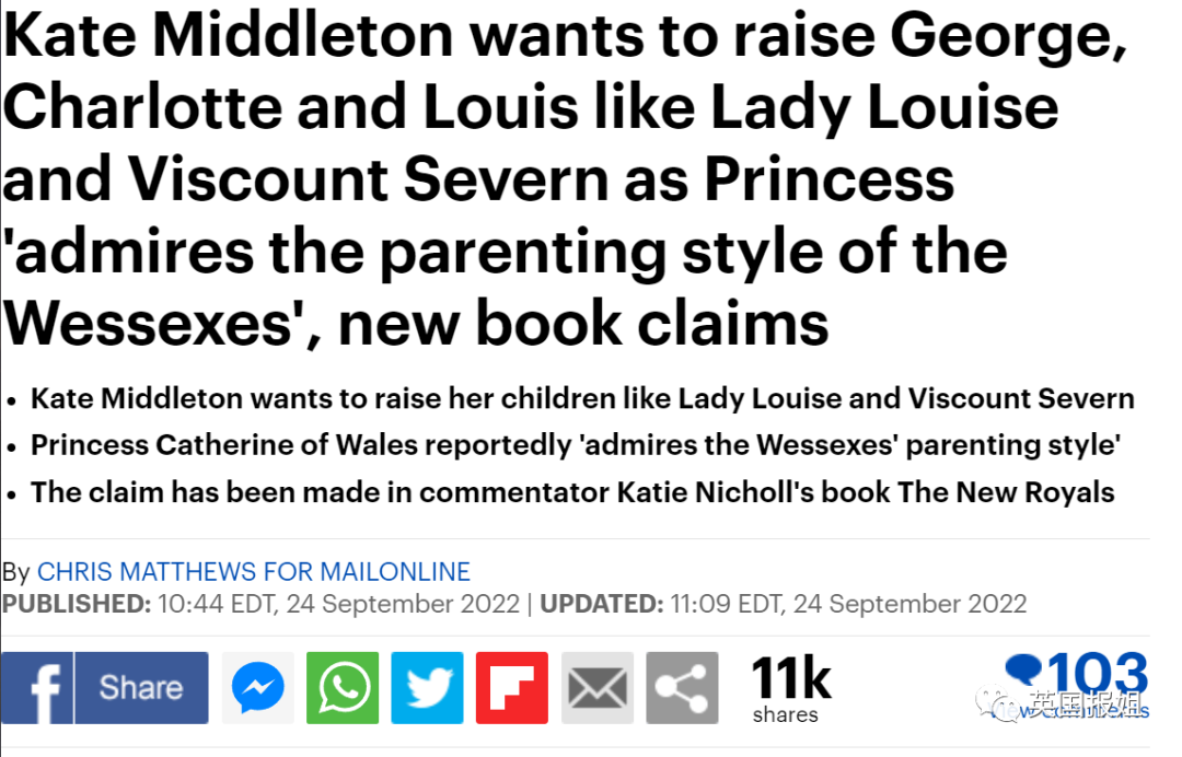 “凯特很欣赏威塞克斯夫妇的育儿方式。”