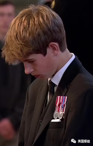 他表情肃穆,低垂下头,在数百万民众面前公开致敬故去的奶奶,在亲人逝去的痛苦中却表现得克制而尊重,远超14岁的成熟。