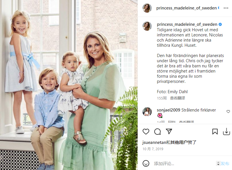 他家和丹麦情况比较像,也是只保留了王储家孩子的王室地位,把其他孩子都从王室税金名单上除名,让孙子孙女拥有更自由的人生。