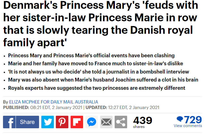 不过,当时丹麦媒体立刻否认了有任何不和发生,并声称这是有人刻意装成王储妃大玛丽的哥哥伪造的账号。