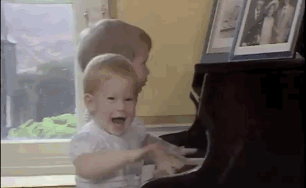 在罕见的王室录像中,还是幼儿的哈里和威廉一起瞎弹钢琴,查尔斯在一旁鼓励“再大点声”。