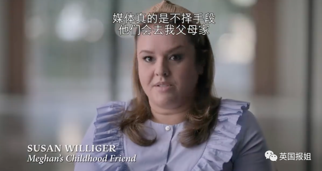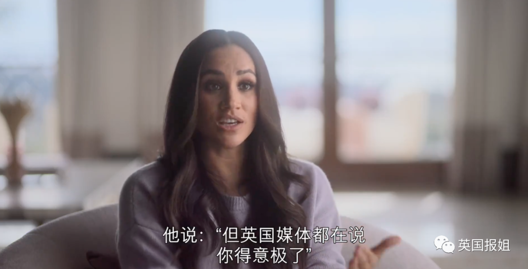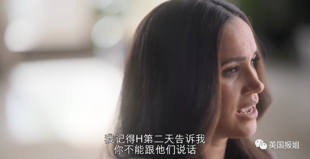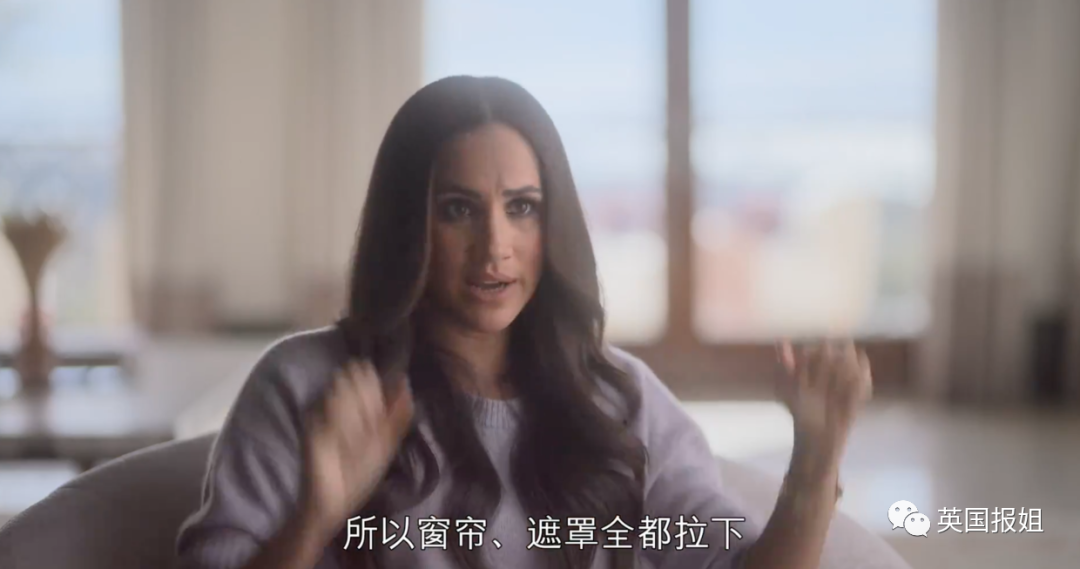 纪录片中用了一些视频日记的镜头,其中一条是梅根素颜裹着浴巾,非常沮丧地说:“我真的很想赶紧摆脱这些事,我已经不知道说什么好了。”说完几乎要哭了出来。