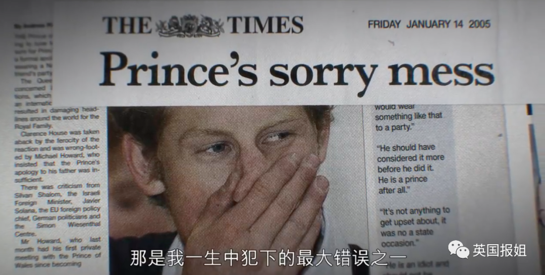 哈里在纪录片中道歉,并表示这是自己这辈子做的最错误的一件事。