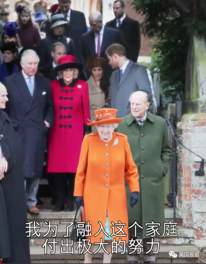 梅根在片中表示她很喜欢王室大家族的感觉,第一次圣诞节聚餐让她感到了温暖。当时,梅根坐在菲利普亲王身边,一直在和亲王说话,亲王也一直在笑。