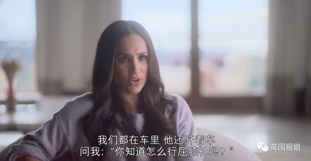 梅根调侃道,对她来说屈膝礼就跟中世纪骑士比武一样陌生又古老,所以最后她对女王行的屈膝礼是这样的: