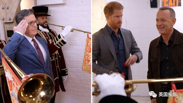 还上脱口秀,跟汤姆·汉克斯一起嘲讽王室礼仪: