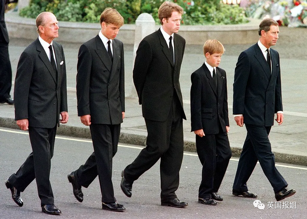 12岁的哈里在母亲的葬礼上哭泣,他意识到这违反了王室“感情不外露”的传统,因此他为自己感到羞耻。