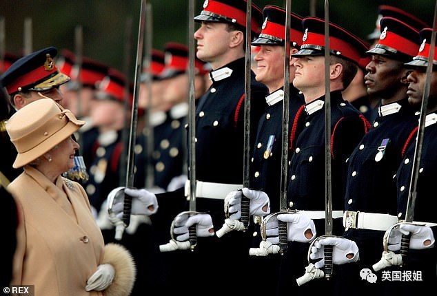 图:女王检阅军队时,很骄傲地看着哈里