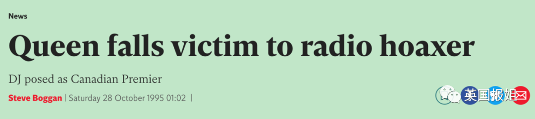 1995年,加拿大主持人模仿成前总理Jean Chretien,给白金汉宫打电话,不知道以什么方式混过了秘书们,最终成功连线女王。
