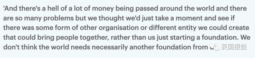 他还说自己和梅根打算把北美的各家基金会和慈善家联合起来,建立一个类似于同盟的慈善组织。把慈善界四处流动的钱都凑在一起,改变一些现状。