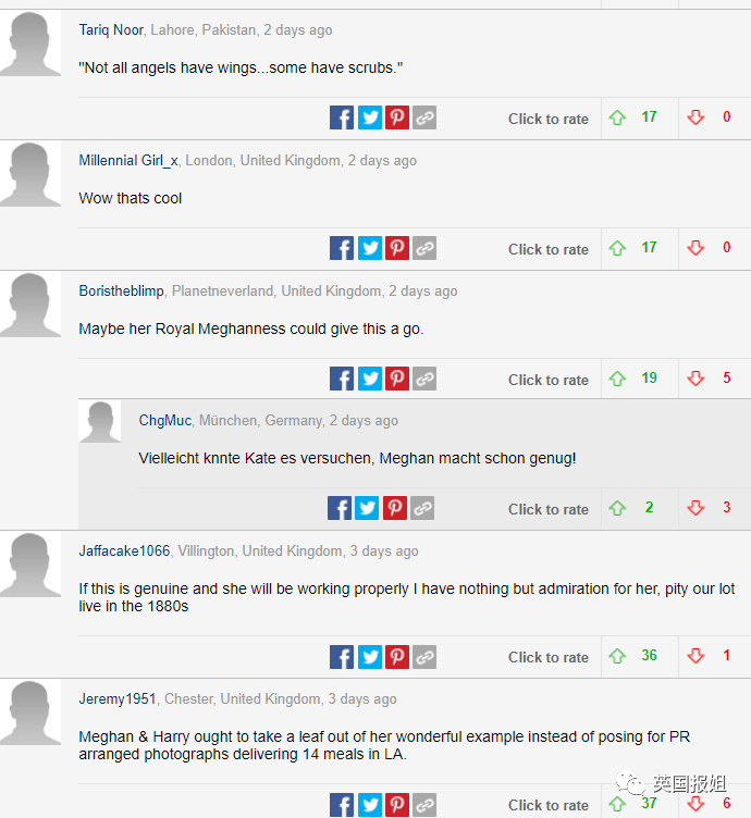 同样是志愿者,哈里梅根下面的新闻几乎都是指责,而索菲亚王妃的新闻下面都是赞誉,对比已经很强烈。