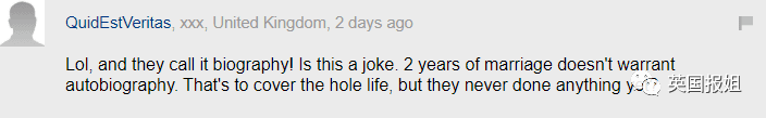 “笑死,居然管这叫自传,搞笑吧?两年的婚姻不配出传记,传记要记载的是人的一生,不是一事无成的你俩。”