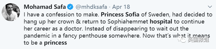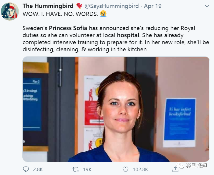 瑞典王室声明:"王妃希望作为志愿者帮助解决危机,为减轻医护人员的巨大工作量做出自己的贡献。"