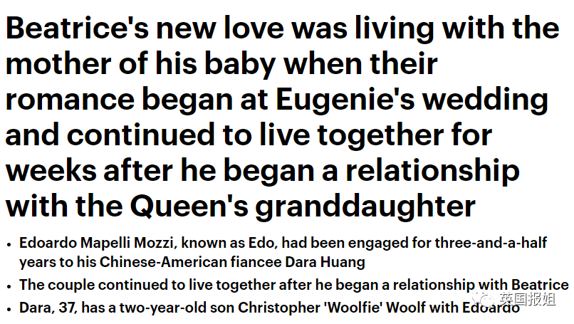 在莫兹开始与碧翠丝公主交往的时候,他与前未婚妻Dara Huang,还没有分手……
