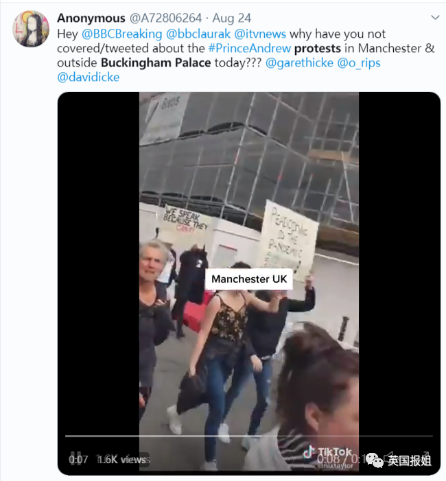 但神奇的是,虽然抗议视频在推特上获得了300万的巨大观看量,但在24号前,网友发现几乎没有一家英国主流媒体第一时间报道正在爆发的抗议。