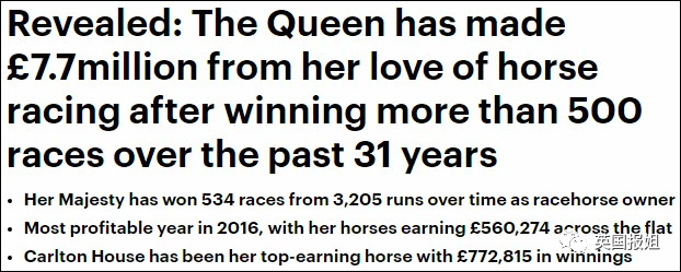 女王爱马世人皆知,从6岁开始与马相伴的她拥有两个马场,养了30多匹血统优良的赛马。