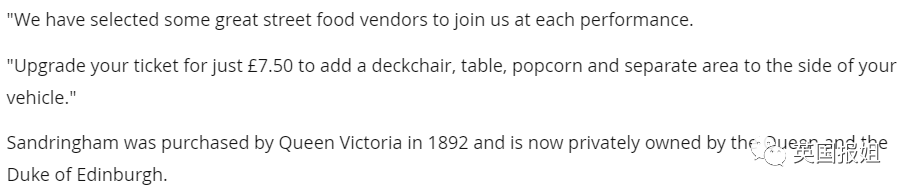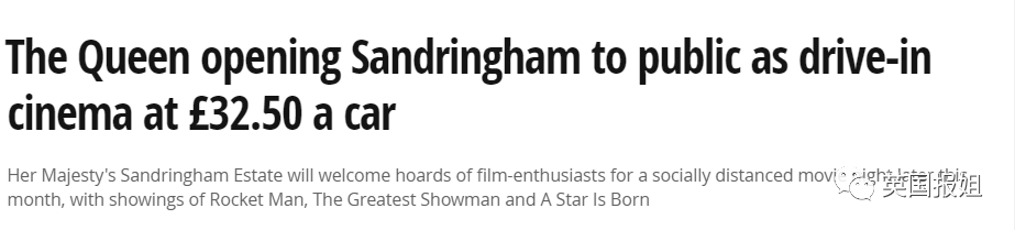 女王为了创收,将自己最喜欢的私人庄园,以32.5英镑(约295人民币)的门票价格开放给公众当汽车影院!