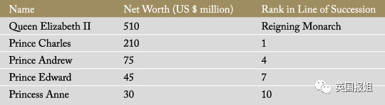根据CEOWorld去年的统计,女王以5.2亿美元私人净资产位列世界王室榜单第11位,虽然和榜首泰王的430亿美元相比实在不值一提,但肯定没有到发不出工资的地步。