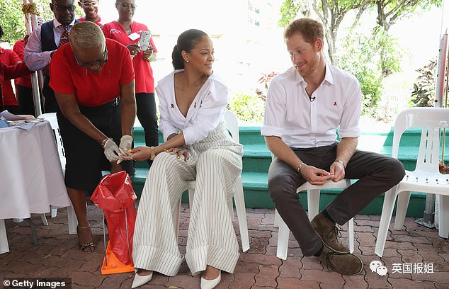 说到这,2016年巴巴多斯独立五十周年的庆祝活动上,哈里王子还代表女王参与,当时还和一同到会的日日互动。谁能想到,现在照片里这俩,一个和王室决裂成了半个美国人,另一个被网友推举为新女王。