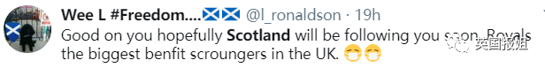 “祝你们好运,希望苏格兰很快就会跟上你们的脚步,皇室是英国最大的利益掠夺者”