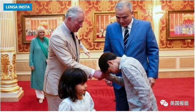 在哥哥用标准的礼节对查尔斯王子行礼的时候——