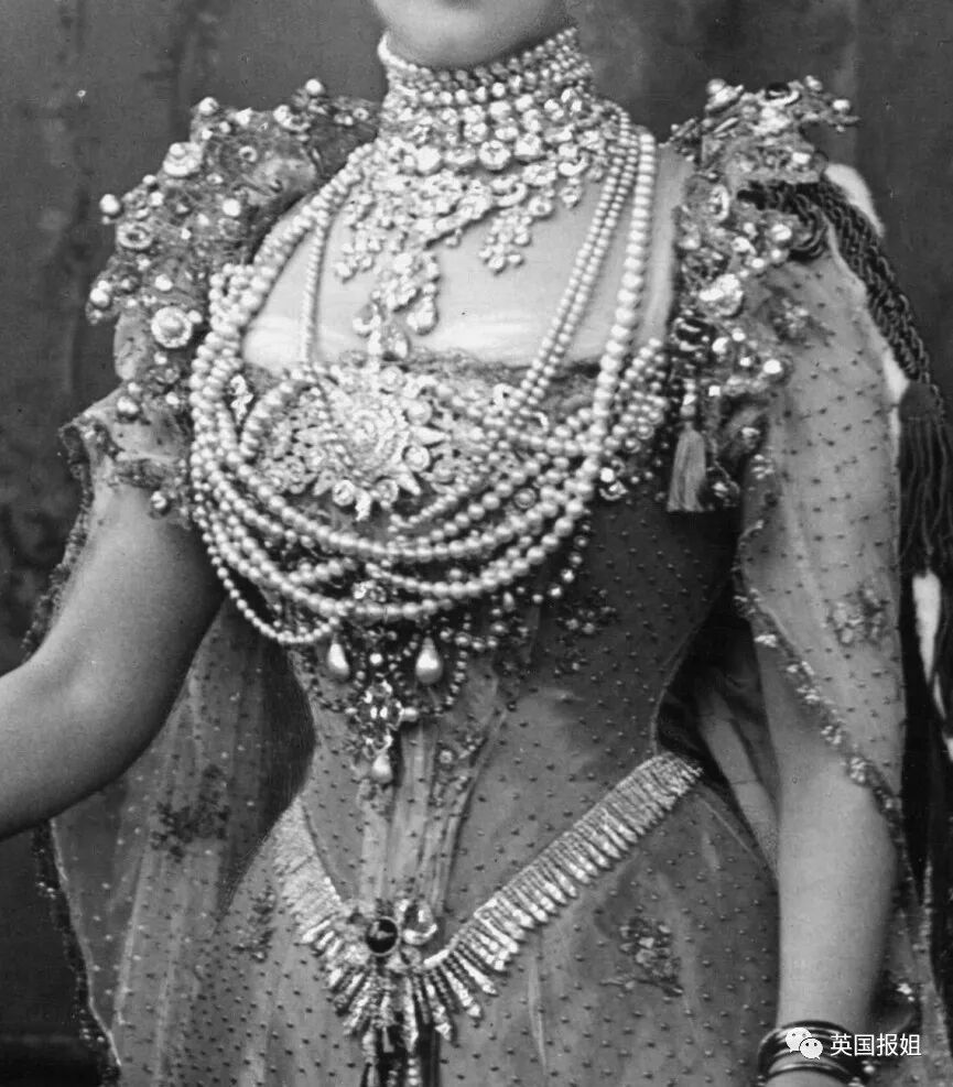 1863年,父亲成为丹麦国王的同一年,亚历山德拉远嫁到了英国王室。婚礼前,维多利亚女王将一条名贵的珍珠钻石项链,作为结婚礼物送给了亚历山德拉。这条项链,就是最开始介绍的凯特出席活动佩戴的那条。