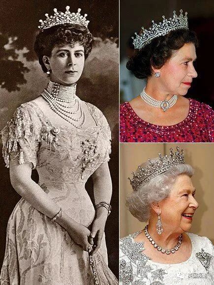除此之外,王妃的许多首饰也流传至今。例如这顶名叫Kokoshnik的王冠,从她开始,儿媳玛丽王后、伊丽莎白王后、伊丽莎白女王二世都曾经戴过。
