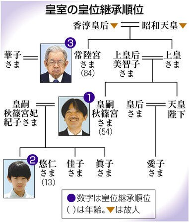 60岁的德仁天皇只有一个女儿爱子,这导致德仁之后的合法继承人只有84岁的正仁亲王(老天皇他弟),剩下的就是文仁亲王,和文仁的儿子悠仁。