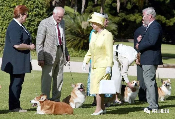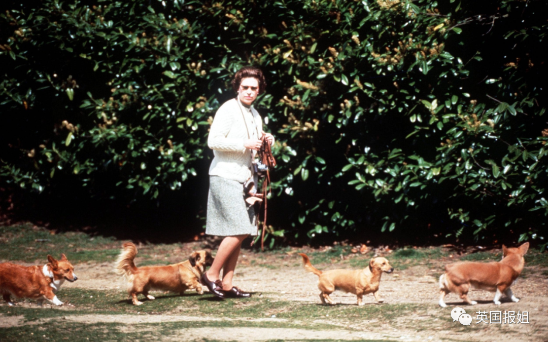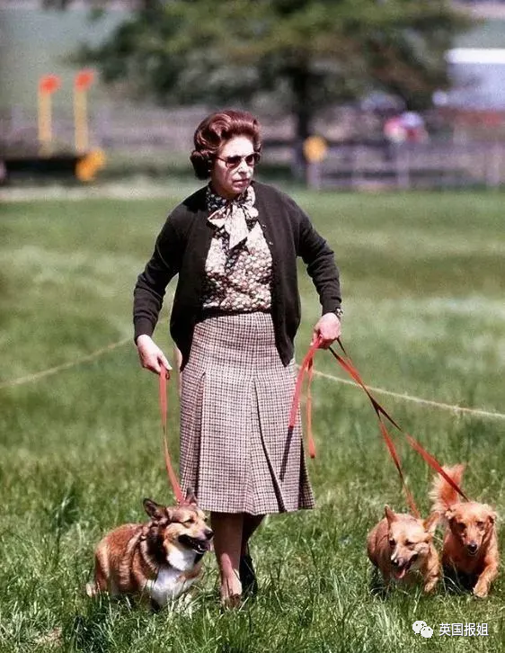 女王素来爱狗,一生中前前后后养过30多只柯基,出门时前呼后拥的一群小短腿,甚至已经成为了王室的象征。
