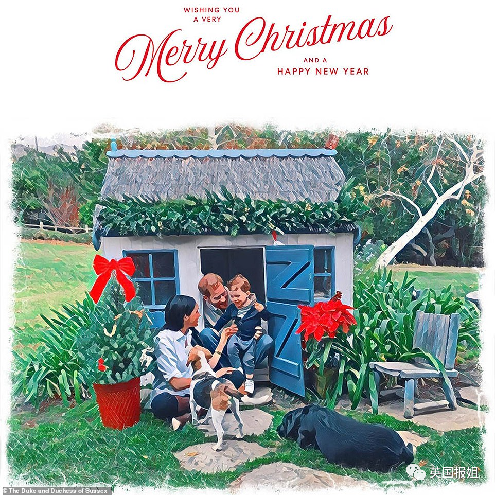 现在一家三口生活在加州蒙特西托价值1500万美元的豪宅里。这张明信片就是在豪宅的花园中,由梅根的母亲拍摄。明信片是由梅根赞助的总部位于伦敦的动物慈善机构帮助发布的。