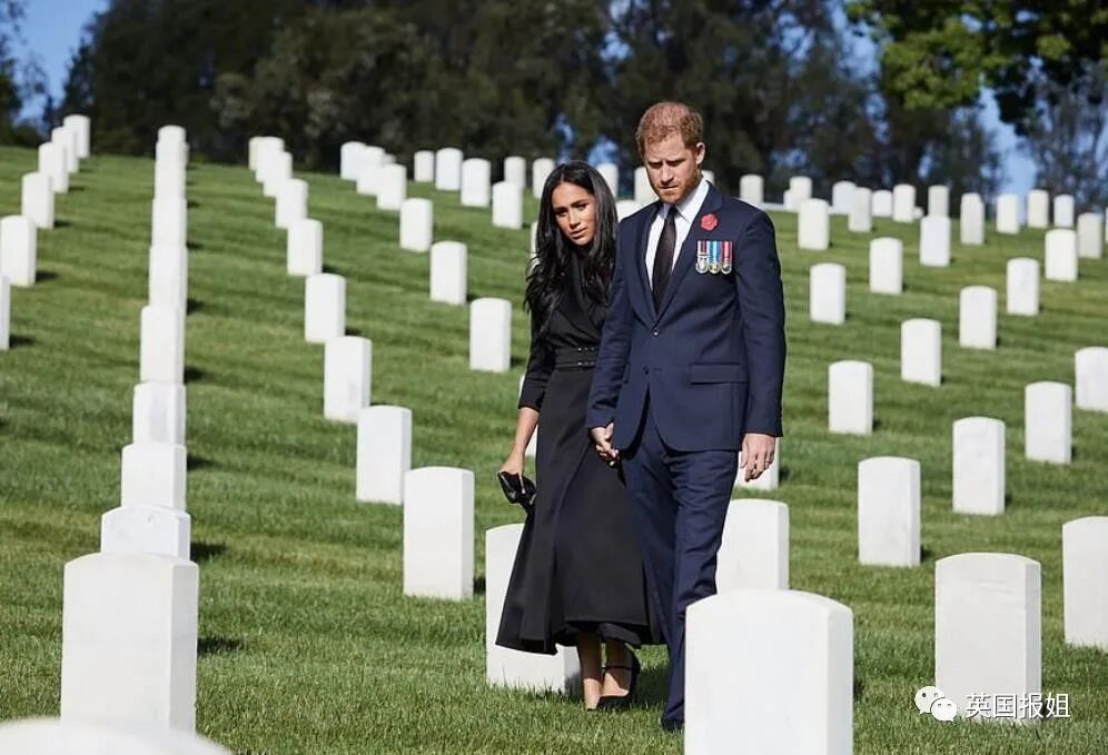 哈里在阵亡将士纪念日献上花环的请求被她拒绝之后,扭头就公布了和梅根在洛杉矶国家公墓献花的照片。