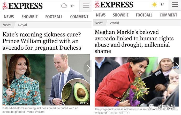 凯特怀孕时用牛油果治疗孕吐完全没问题,但梅根爱吃牛油果,媒体就说牛油果业存在“人权问题,非法砍伐问题”,梅根一个人权斗士居然吃牛油果,简直是伪善。