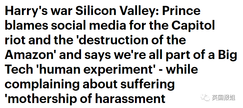 上周呢,哈里王子突然向美国的所有大科技公司“宣战”。