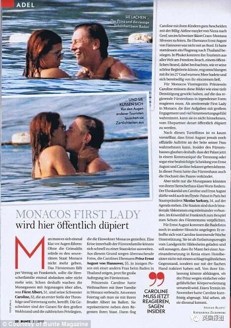 当时有家杂志拍到了光头的卡洛琳和恩斯特在游艇上的照片,肯定了两件事:卡洛琳秃了,以及她一直保持着和恩斯特的不伦关系。