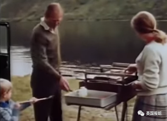 一会还拿着小铲子围观姐姐和爸爸烤肉,菲利普亲王对爱德华一直很有耐心。