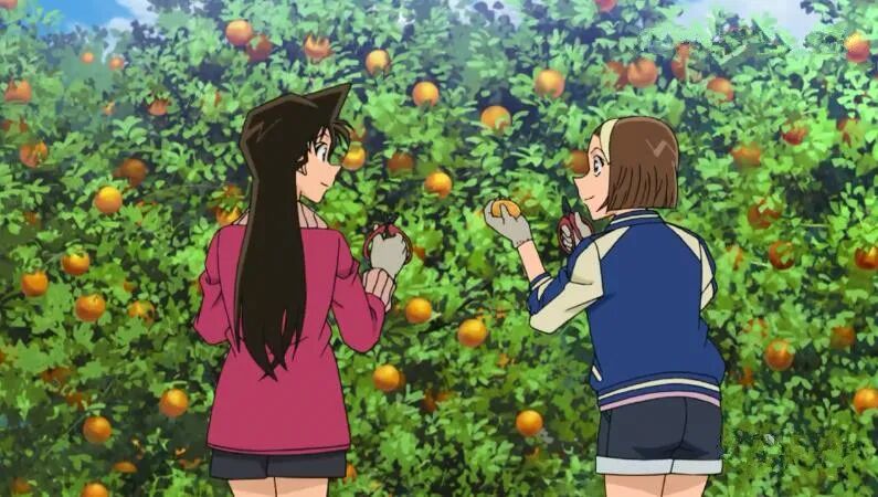 在TV924集(拆分版979集)《夕阳下的橘子林》中,柯南、小兰和园子来到了一个橘子园去采摘橘子。没想到在橘林中,却隐藏着一起杀人事件!