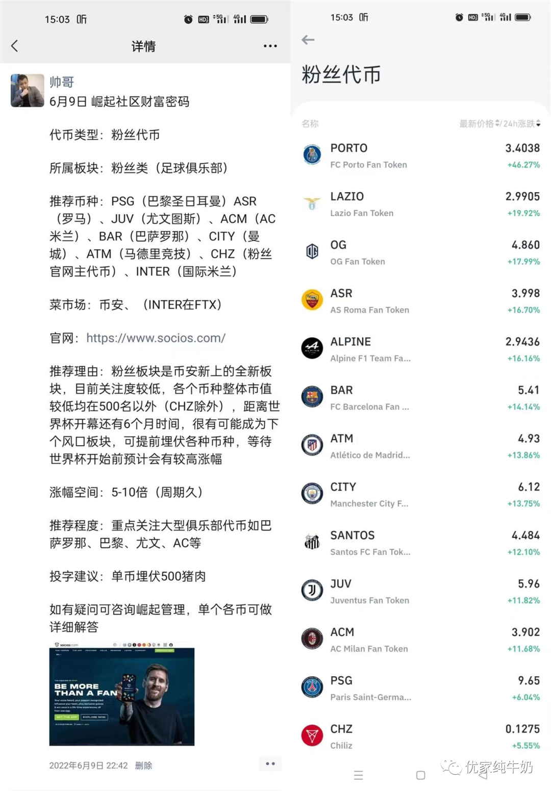 众所周知世界杯马上就要来临了,粉丝代币即将起飞,之前社区在6分月就推荐过粉丝代币,跟上的小伙伴已经吃上肉了,在昨天的直播中也分析过。