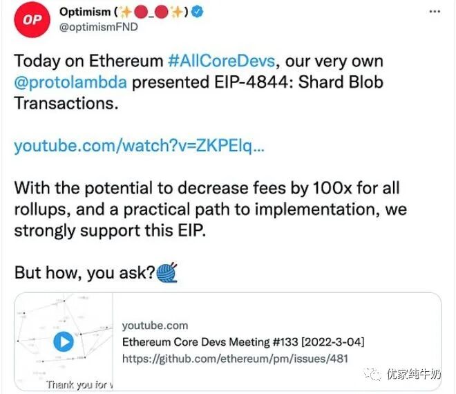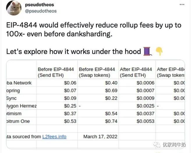 EIP-4844:也被称为‘proto danksharding’,这个更新将推动 rollup 交易成本大大降低。
