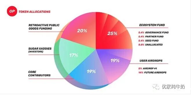 未来的空投将占另外 14% 的代币供应量,分配情况见下面的饼图。虽然未来空投的资格标准还不清楚,但你可以在 Optimism 上通过桥充值 ETH 并经常使用不同的去中心化应用程序,以获得更高的机会来获得下一个用户分配。