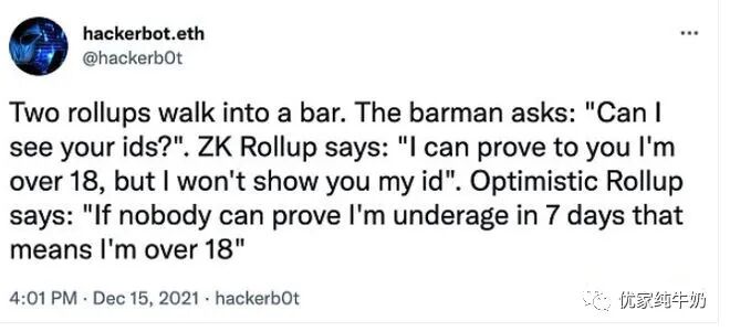 下面给大家的一个关于 rollup 的笑话可以帮助你记住 ORs 和 ZKRs 之间的区别: