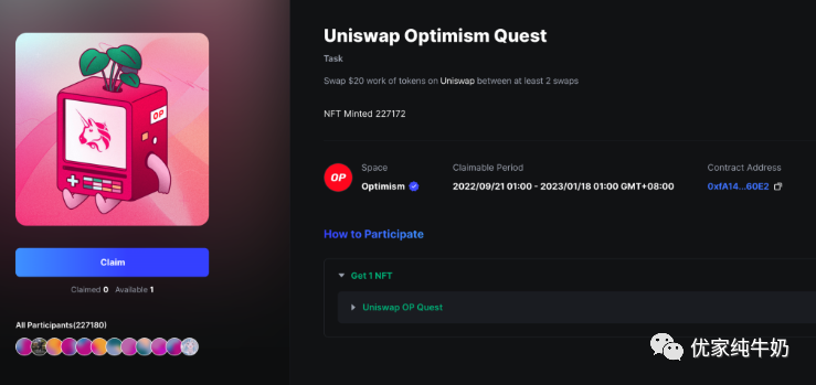 完成相关任务要求, Uniswap 为例且在Uniswap 完成至少2 次20 美元以上的SWAP 即可获得NFT