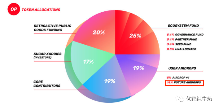值得注意的是,Optimism 在公布代币经济学的时候就预告,仍有14 % 的空投分配尚未决定如何分配,官网文件称若要获取第二波与第三波空投的最好办法,便是多多参与Optimism 生态,而相较于第一波的5 %, 14 % 将是更庞大的空投数量,这也迎来空投猎人的关注。