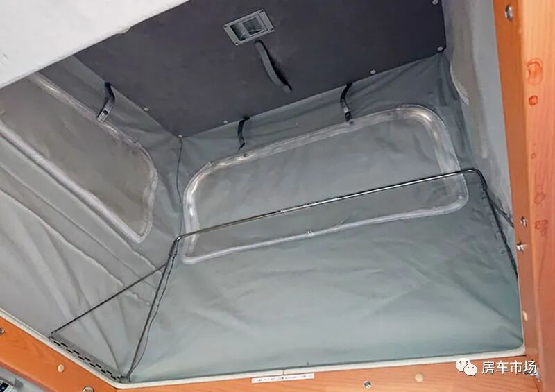 车顶升起后可以直立站在车内,空间宽敞不少,车顶的帐篷床位并不大,尺寸为:1800*1100毫米,能睡下1-2人,打开侧面的窗户可以看到外面的风景。
