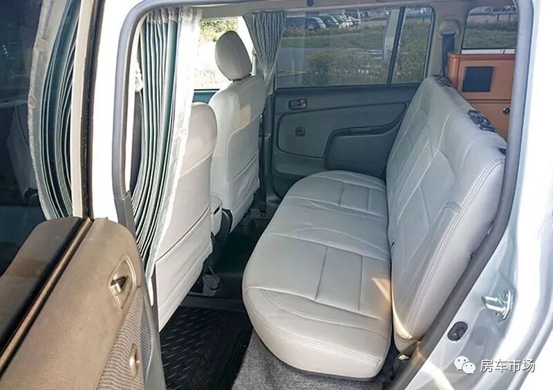 驾驶室正副驾驶为独立座椅,后排座椅为联排座,可以将座椅整体放倒,能直接和后部空间拼成一张床,后部空间车厢两侧是橱柜,一些生活物品放置其中。
