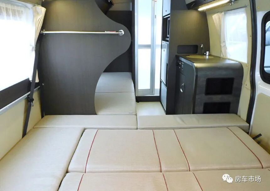 这款以丰田海狮长轴高顶打造的房车,空间要大不少,内部的床位较多,有厨房和独立的洗漱间,适合一家4~5人出行,国外售价约合人民币30万元。更多新款房车、国外房车、亲民现车、二手房车、房车配件、团购房车及优惠信息可持续关注房车市场