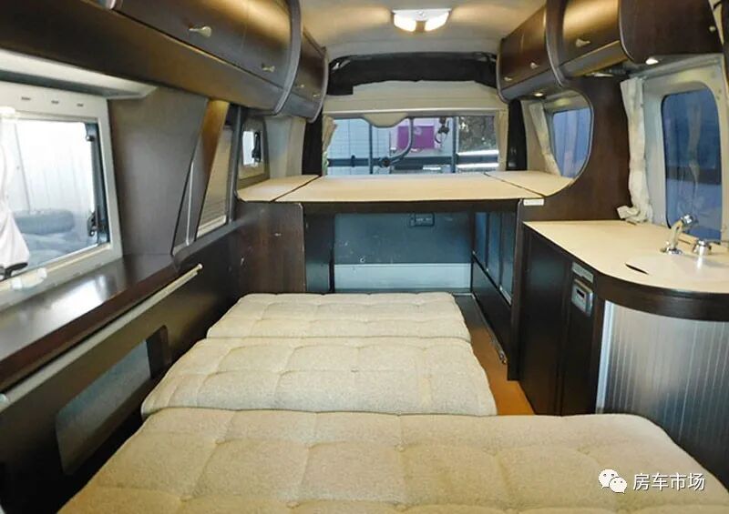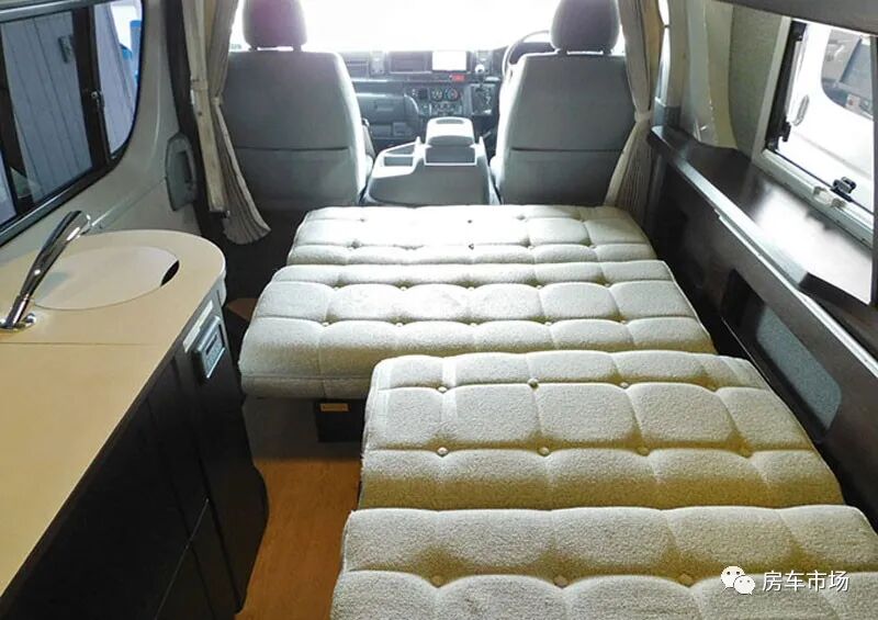 这款丰田海狮房车,合理利用有限空间,设置两张大床能睡4人,可以把它称为床车也可以,它能带着一家人出行,有基本的水电和厨房配置,对于很多旅行者来说足够了。此车国外售价为约合人民币20万元。