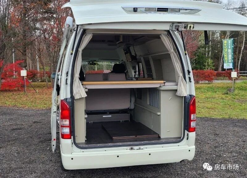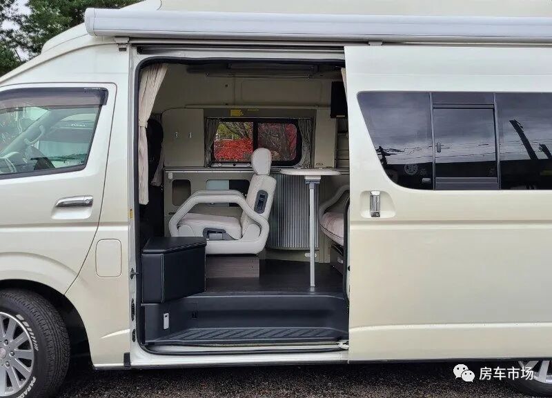 这台丰田海狮超高顶房车,通过加高车顶,拓宽外窗,来增加车内空间,后部床位宽敞,全车配有基本的生活设施,能做饭休息,适合两人短途旅行。