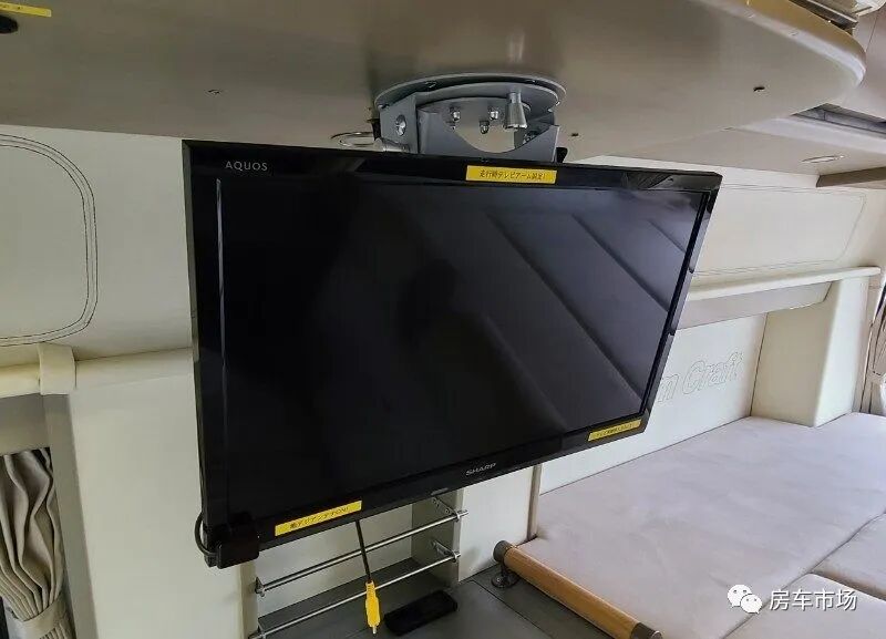 侧面厨房配有洗菜盆,可以拿到车外使用的延长水龙头,双眼盒式燃气灶台,40升直流车载冰箱,微波炉,清水箱20升,灰水箱20升,做饭设备齐全。厨房上部安装了一台19寸液晶电视,驻车休息时使用。
